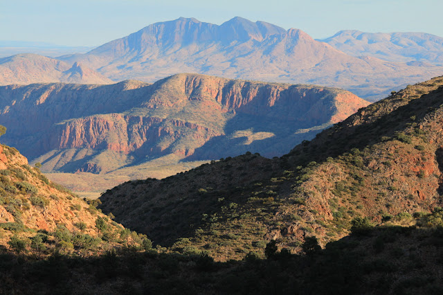 There really is only one season for walking in central Australia - winter. If you are from southern states, it will feel like summer. And, if you are not inclined to getting up in the dark and walking before sunrise, then this place may not be for you. Because winter afternoons are hot on the treeless ridges and plains. And, if you cannot learn to sit lazily beneath a river red gum, or on the shady side of a mountain, for hours and hours in the hot afternoon, then maybe, also, this place is not for you. Those afternoons are like a mediation, or mindfulness. City folk pay big bucks for workshops and retreats on this kind of thing. Bushwalkers in the centre of Australia on hot winter afternoons become like practiced yogis and wise hermits - tucked in cool, remote pockets of empty country becoming attuned to the sound of birds migrating in the landscape, insects moving, breezes and stillness, the inner workings of the body and thoughts shifting in and out of focus. Embrace it. Sink into it.